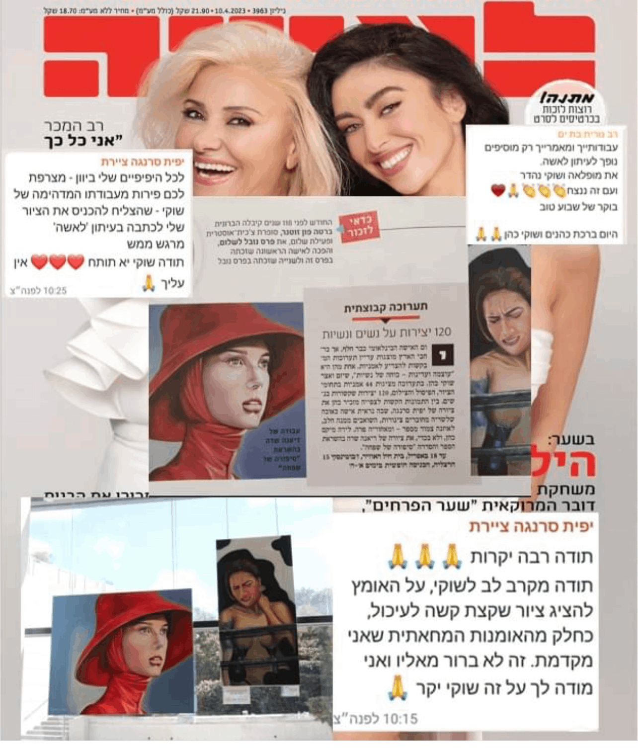 My works have been exhibited in galleries and received media exposure in the various media, newspapers such as: Ma’ariv, and Laishah