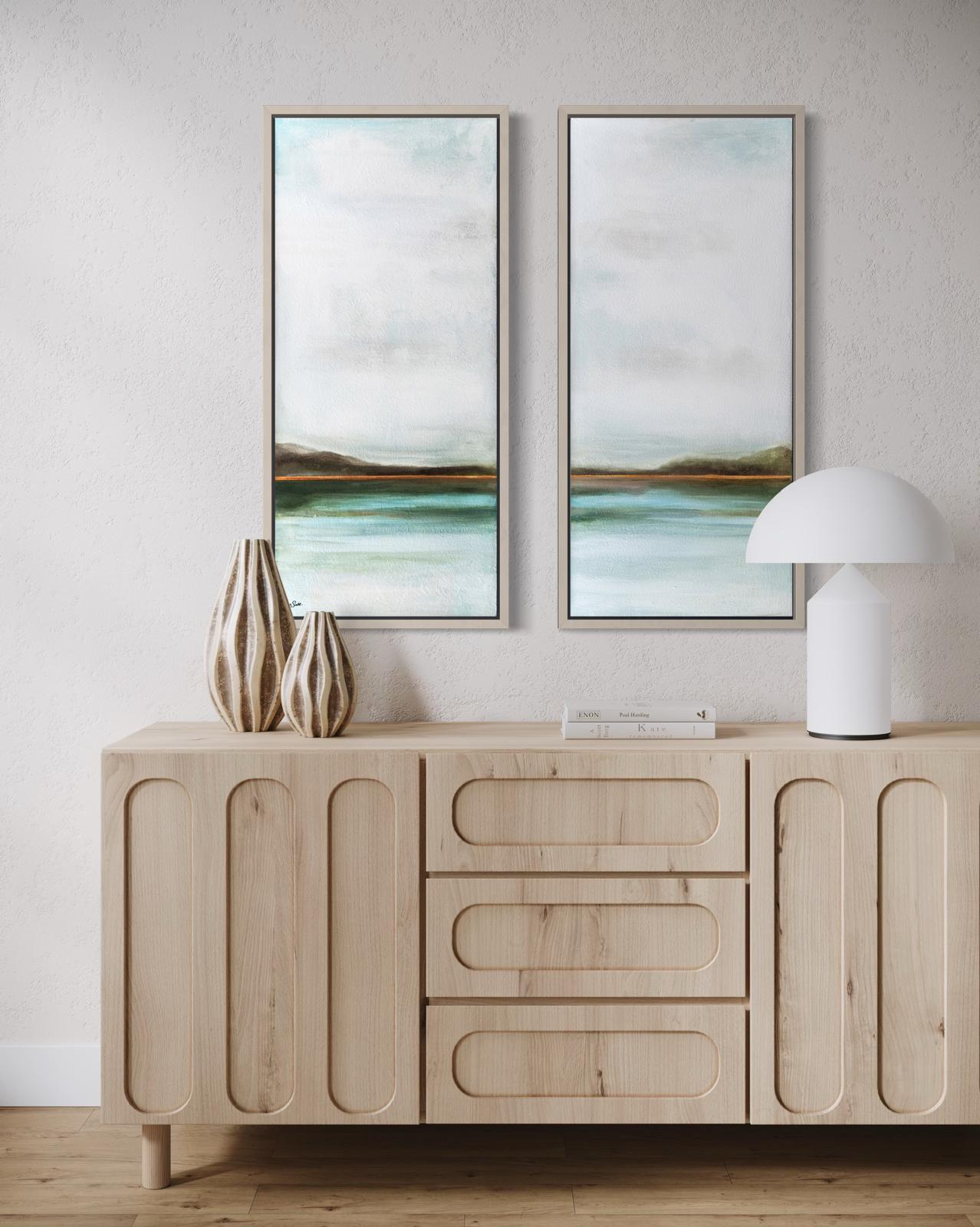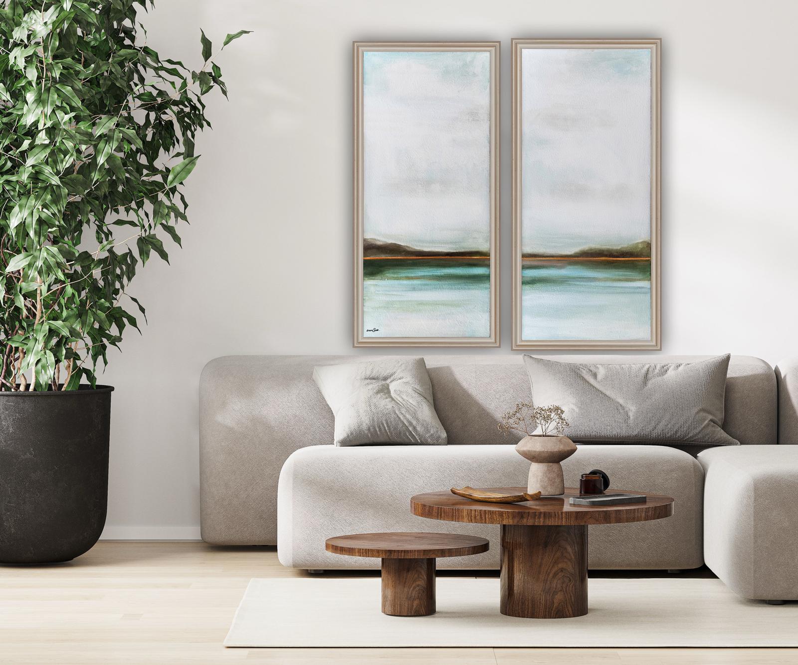 The gentle texture and subtle horizon create a sense of peace and light, adding a serene atmosphere to any space.